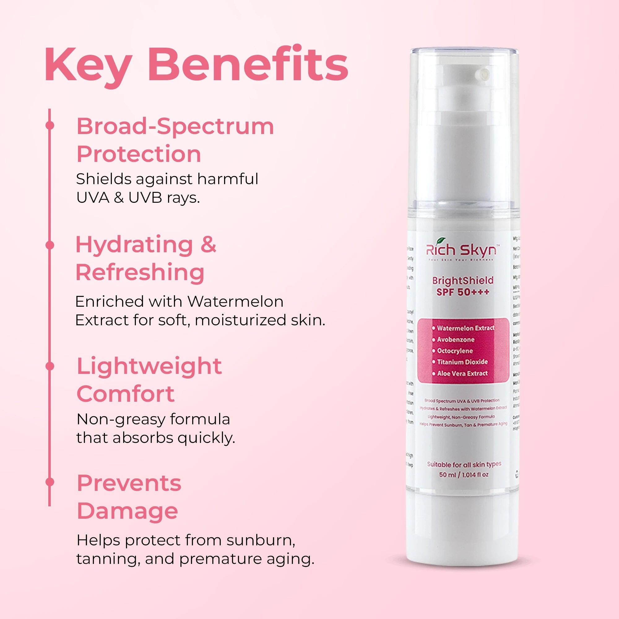 • Provides broad-spectrum SPF 50+ & PA+++ protection